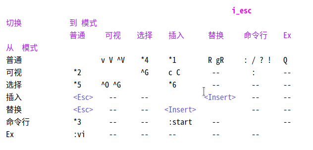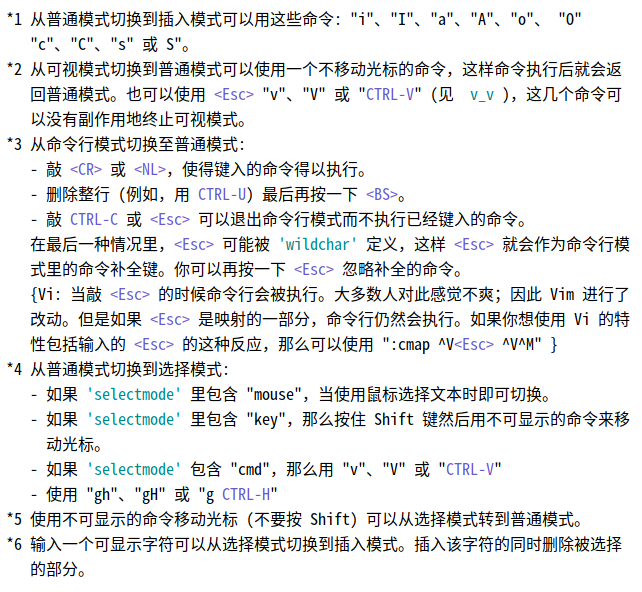 原来除了我们常用的四种基本模式:普通模式、可视模式、插入模式、命令行模式之外,还提供了另外两种基本模式:选择模式、模式。限于本文可读性以及我真的没怎么用过其他两种模式,我们只来介绍一下前面四种模式和一些简单的附加模式。