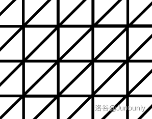发现蜂窝状网格性质不太好,而网格的形状不影响最终答案,所以进行变换,表示为直角三角形网格,如下图: