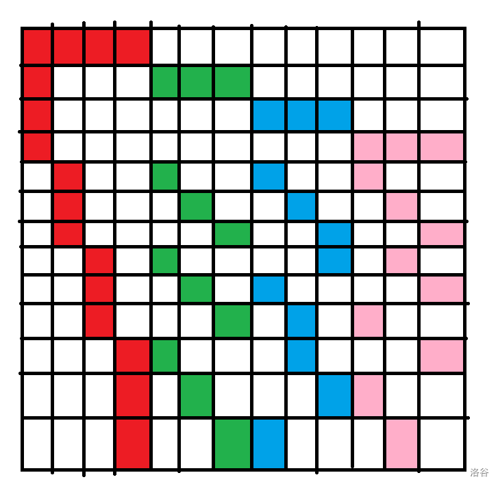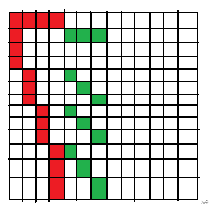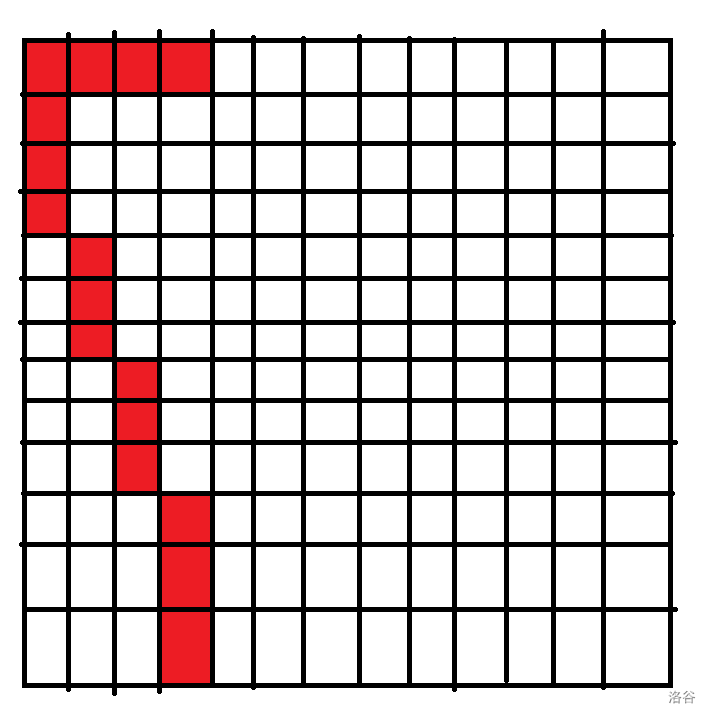 - 对于第 行,我们每次放一段边长为 的正方形的主对角线。