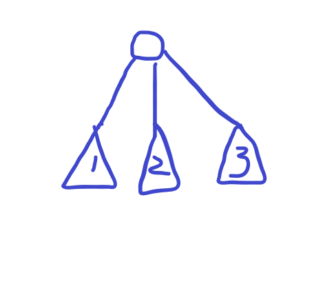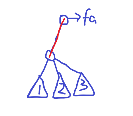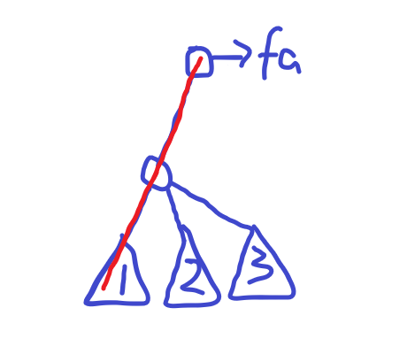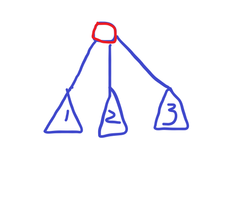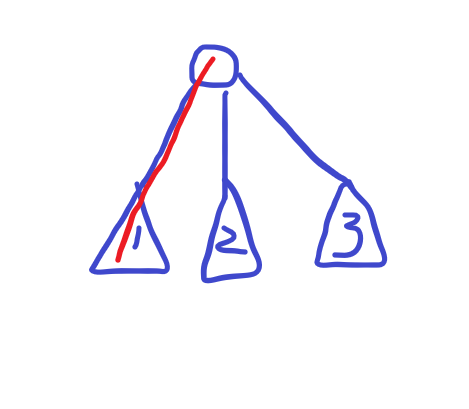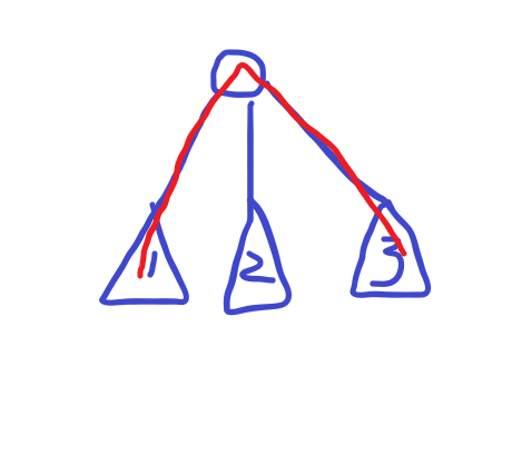 此时子树1、2、3均为情况一,但是只能用选择1,否则选出的路径将会与当前节点组成一条路径,不符题意。