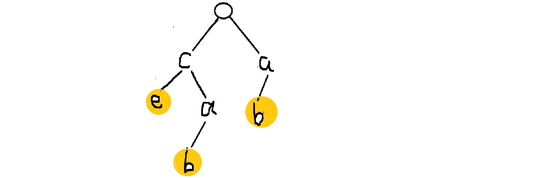 黄色节点标注的就是模式串的结尾,这颗树上一共存储了三个字符串,分别是 ce cab ab。