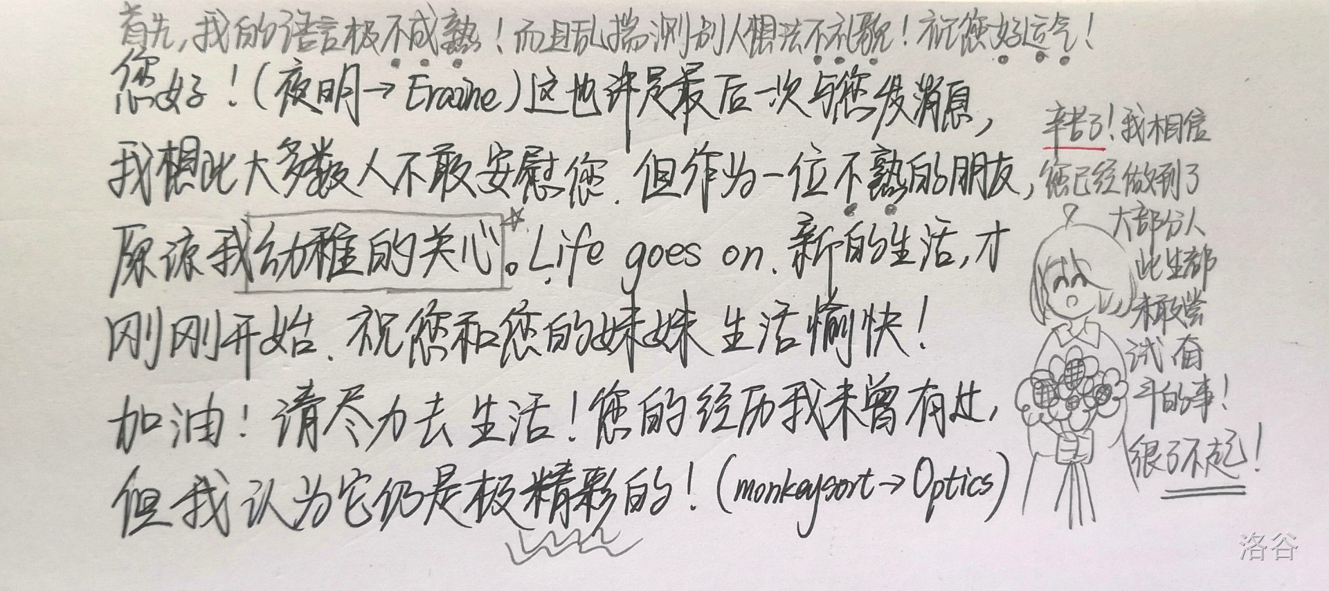 - 唯一一个在我省选后鼓励我的学妹 Optics 同学
