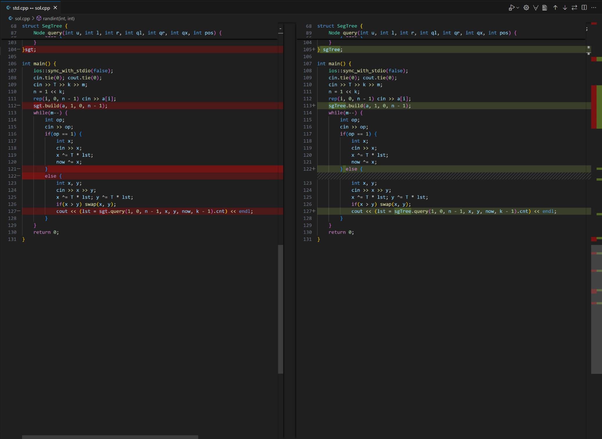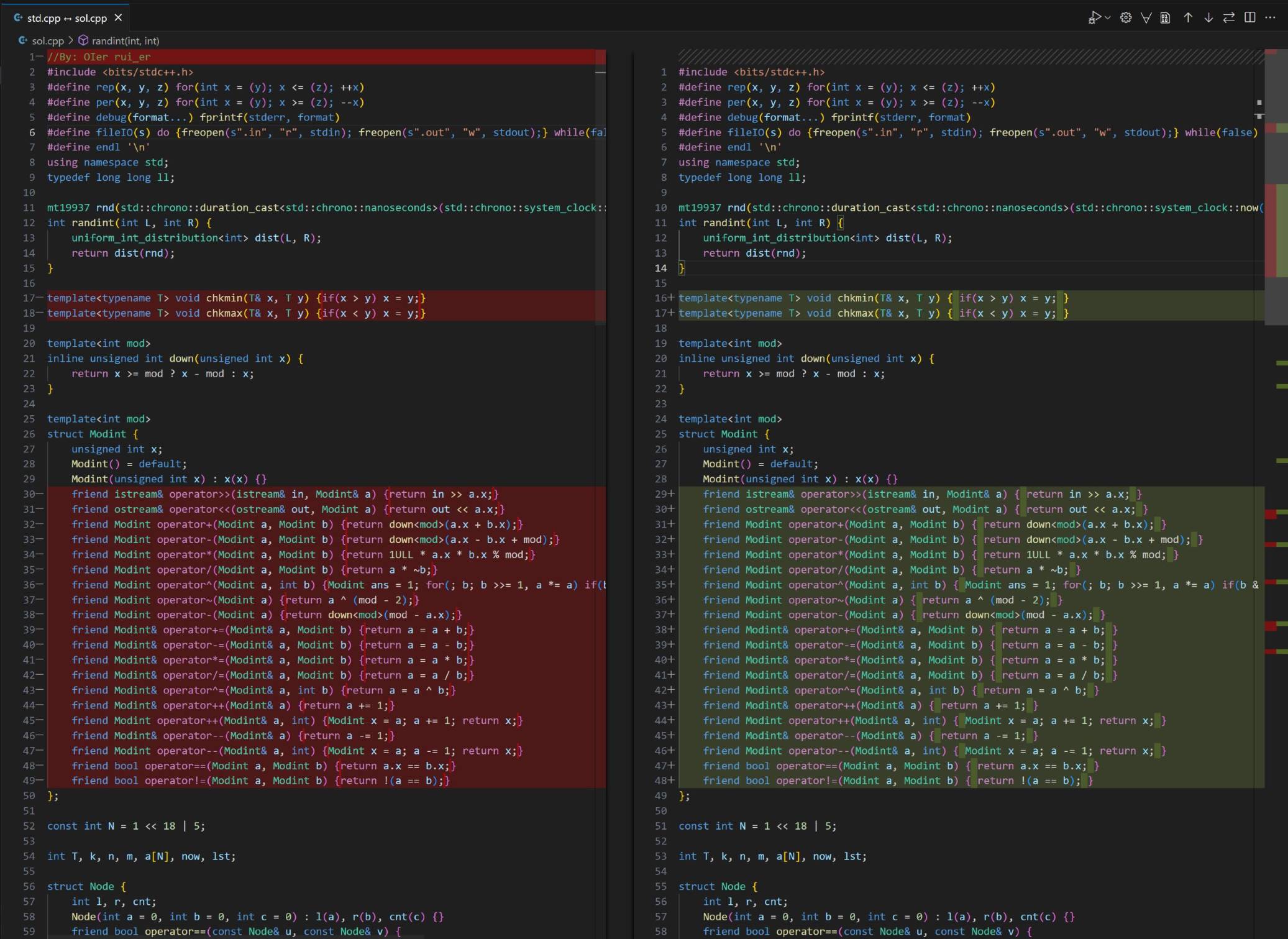 (左为我的 std 代码,右为该用户题解代码)