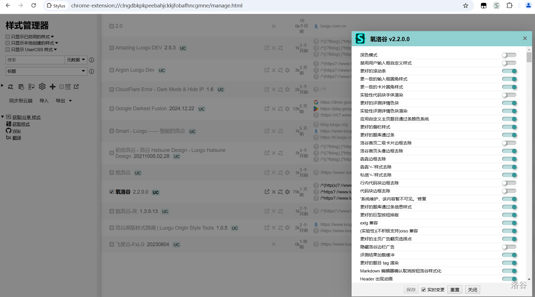 氧洛谷是一款使用 UserCSS 对洛谷的样式渲染进行更改美化的脚本,功能类似氩洛谷和 Smart-Luogu。使用前需 安装 Stylus 浏览器插件。