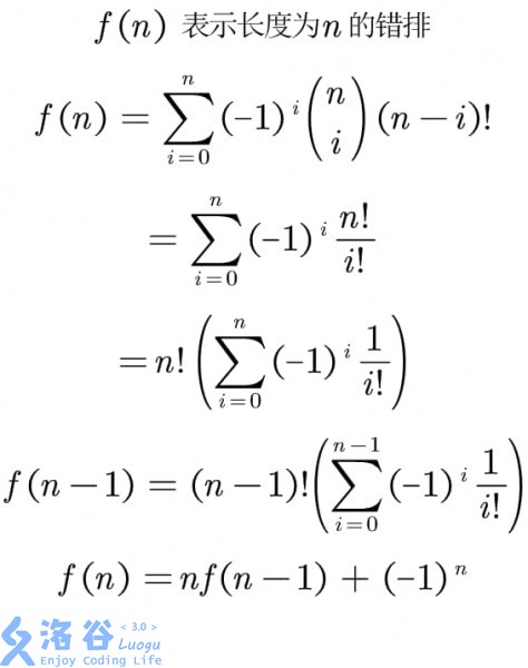翻了一下题解和网络,发现只有我一个傻逼试图用容斥推导错排公式。