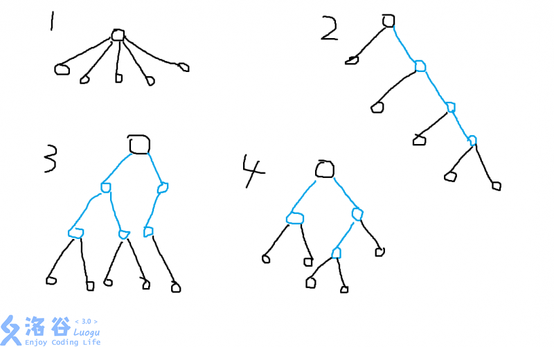 图2深度不能保证,仿佛图3空间大一些,图4不太好写(我太菜了)。