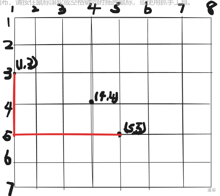 一个城市有多条纵横交错的道路,给出个房子坐标,求那两个相隔最远房子所需要走的距离(不是直线距离)样例输入CPP3 1 3 4 4 5 5输出:CPP6数据范围:样例解释: