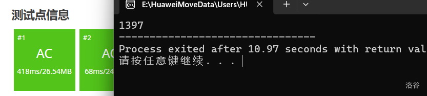 本地第一个点要跑11s,交到洛谷上过了。