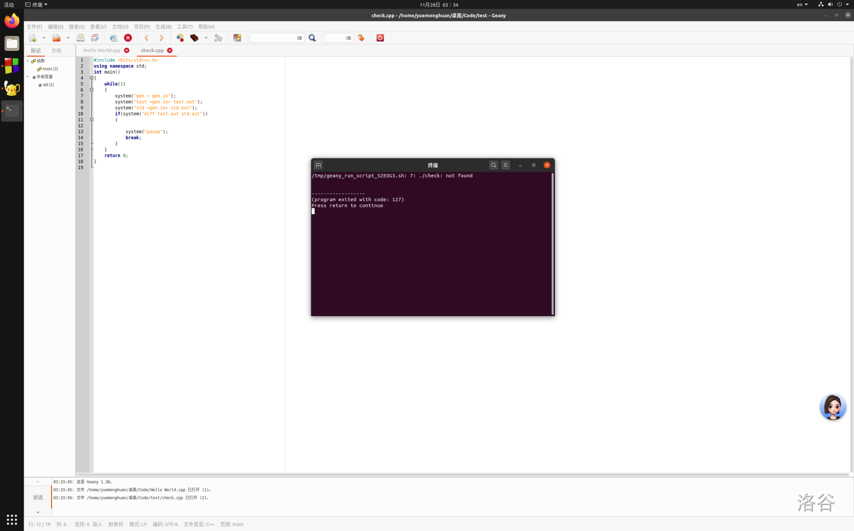 这个弹窗依然会出现,仍会出现同上的问题。有人知道这是为什么吗?二、在用Geany运行上图中的四个cpp文件时均会出现图中弹窗