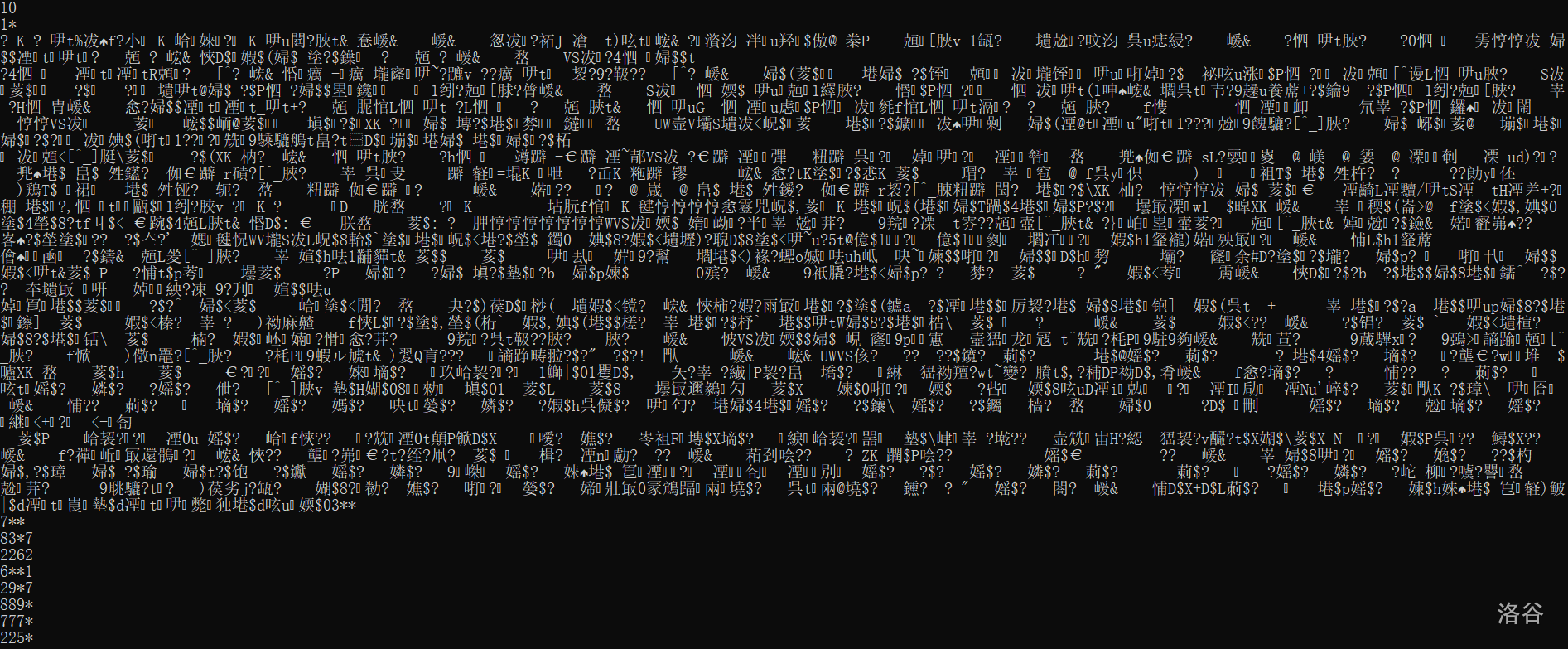 这些乱码是怎么输出的(是字符串s吗?但是我中间没有retrun啊),这些乱码是哪里出来的(是电脑空间剩余吗?但我好像也没有越界啊),还有为什么这个没return的程序会造成这样的后果。(本蒟蒻是五年级的XXS,请讲的清楚一点,谢谢)