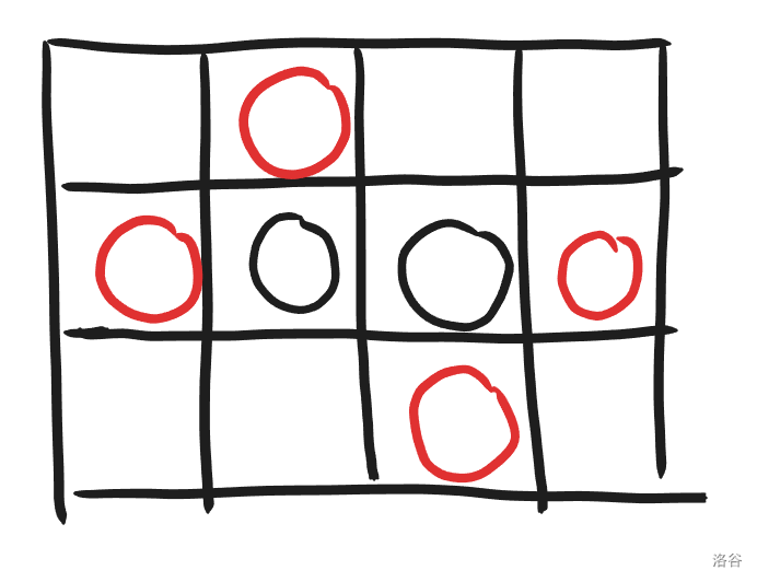 标黑的是关键点,红色的点为起点和终点。对于下面蓝色路径标出来的一种合法方案: