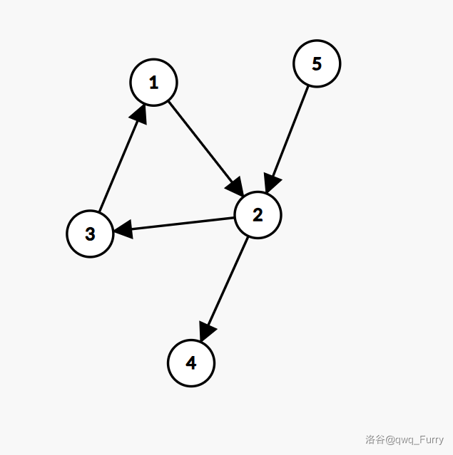 但是按照拓扑排序后,答案为:1,2,3,4(跑一遍拓扑排序后直接输出未找到的点)
