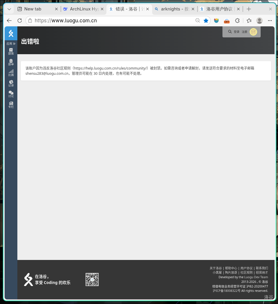 比较急,因为我在 Linux 上的浏览器里登录的 Luogu 界面被它锁了,无法切换账号,现在用 Windows 写的帖子。