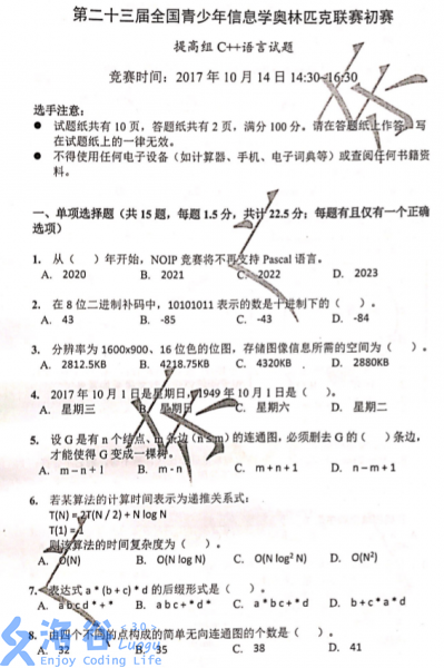 NOIP2017 初赛 提高组试题