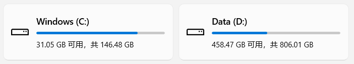D 盘空间剩的蛮多的……但是 C 盘不多……如图