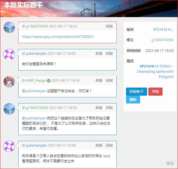 我就想问你怎么知道所有人都会去翻原题面呢?这种口气不应该是一个 说出来的,我相信大部分人在找到原题面时都会向大家分享一下,以让后面做这题的同志少走弯路。