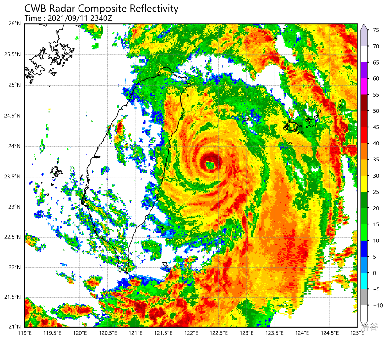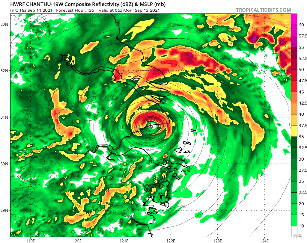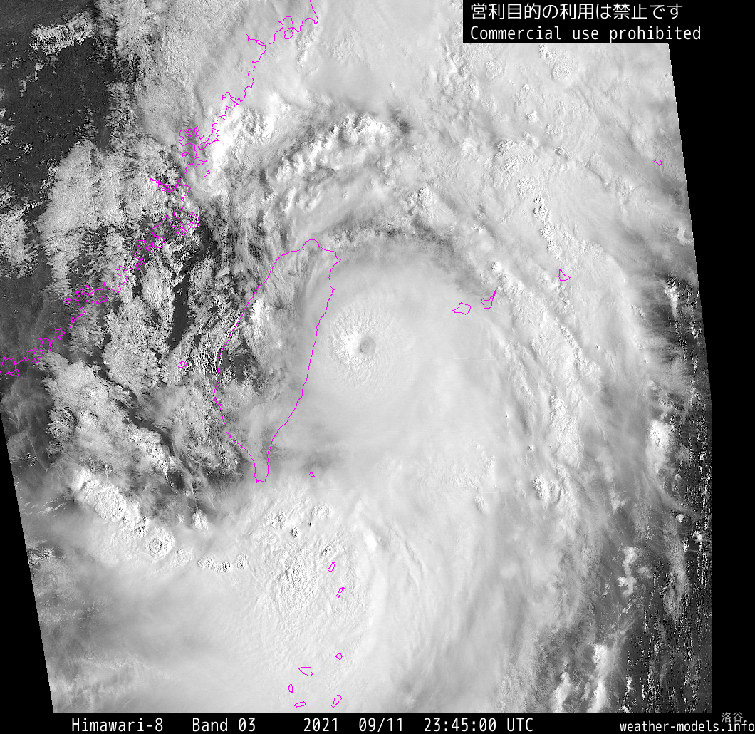 昨晚-今天,灿都的路线明显偏东,使得其在台湾附近走钢丝几乎成功,其核心区紧致,受到台湾中央山脉的影响较小,对强度影响不大。