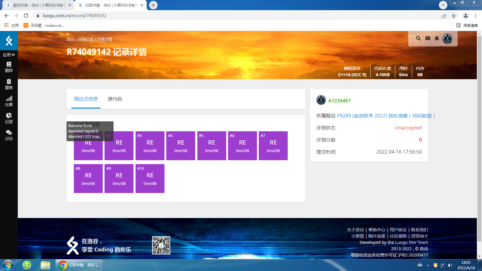 今天打省选,发现洛谷出了民间数据,就想着测一下,结果全是RE...这是洛谷的问题还是我的机子的问题?到时候还能拿分吗?