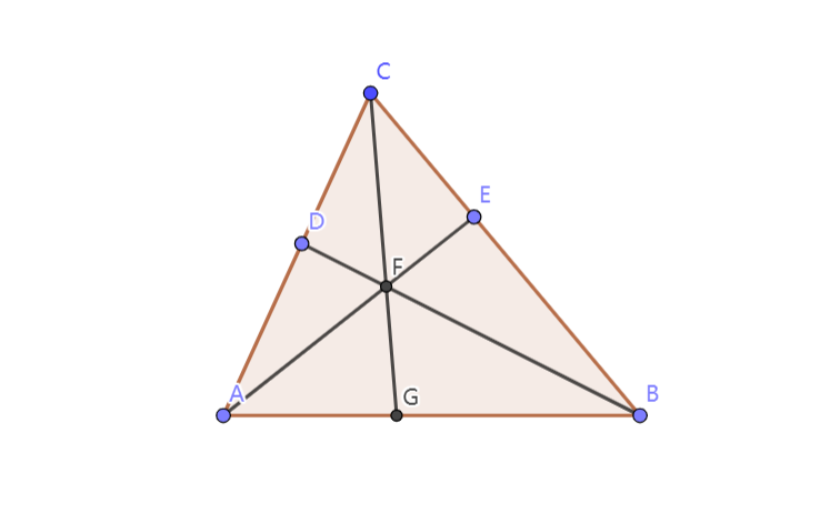 一个三角形,三个顶点向对边随意连边,要交于一点
