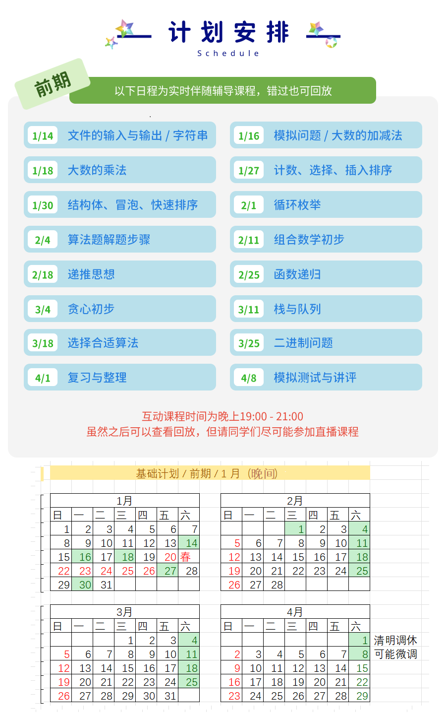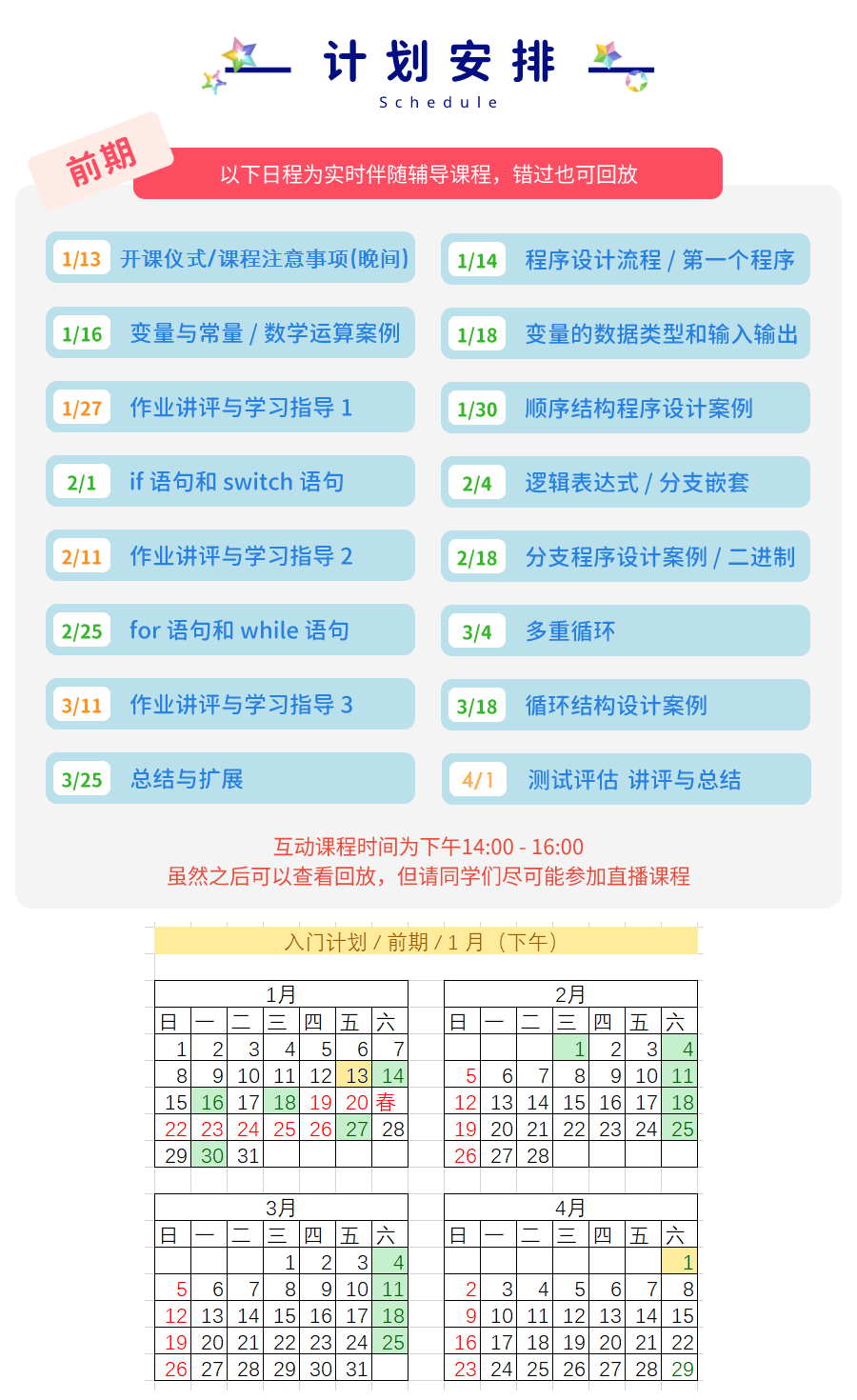 - 开课时间:2023 年 1 月中旬至 4 月中旬,分为前期和后期两期