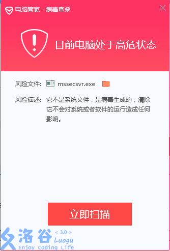 今天我们整个机房都被攻击,一堆电脑蓝屏,360垃圾安全卫士查不出,在与病毒抗争时,我们的老师还十分敬业地在讲课。后来我安了电脑管家,查出了竟是永恒之蓝病毒(一种勒索病毒)