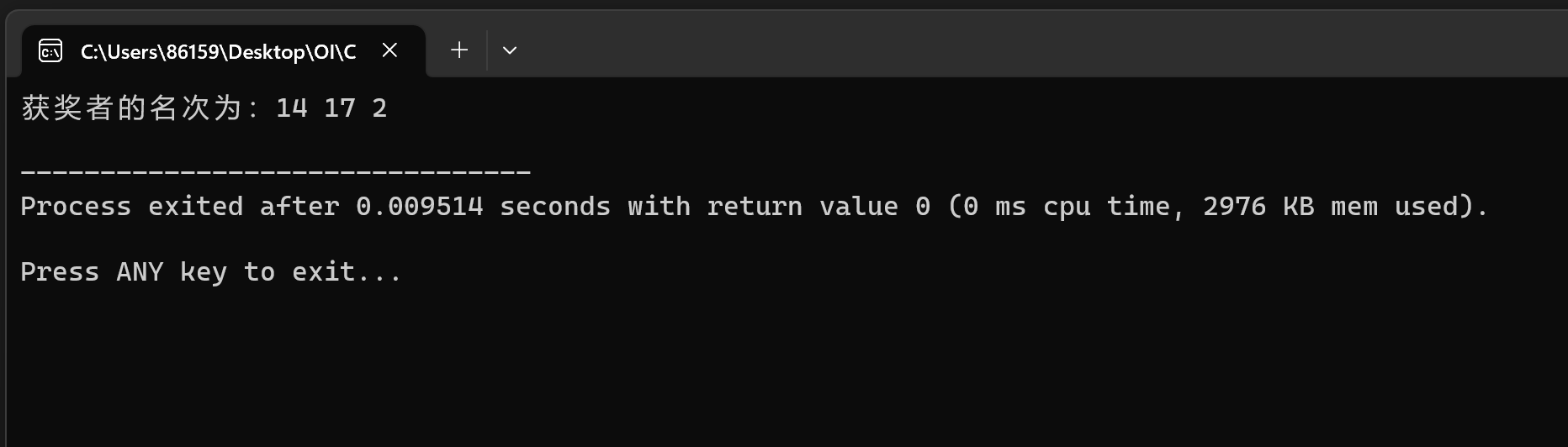 printf("获奖者的名次为:%d %d %d\n",r(1,50),r(1,50),r(1,50));
