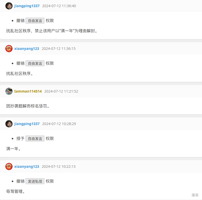 举例:你们真的是激怒我了 洛谷管理员一定要支持我,制裁这群网络暴力者!!!!!
