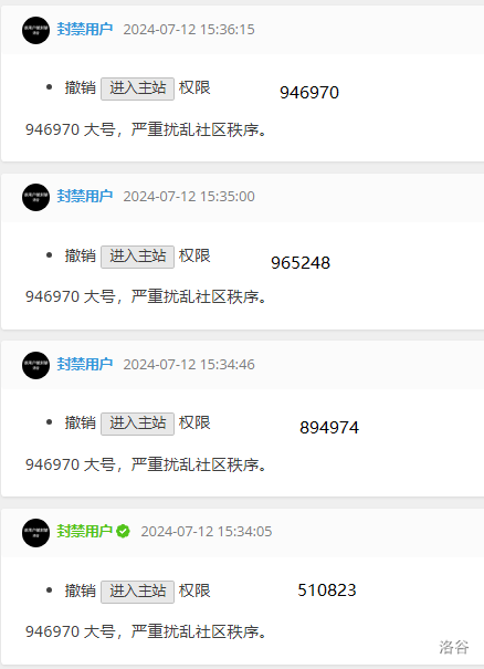 我的猜测如下:前四个猴子被封完之后JC他人继续破坏洛谷社区秩序,但由于被原号主发现后才成功JC,因此没有改头像以及假冒迷你玩家、姜萍等。