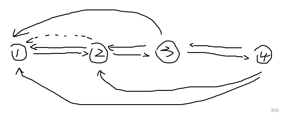 我应该怎么求4到1的路径数量(不能重复经过一个点)