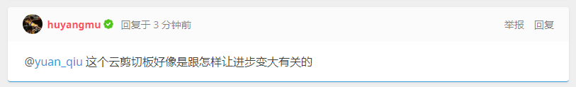 这里的“进步”Ta还专门写了个云剪贴板,但是删了,看上去Ta的确在夸赞别人,但是在无关的地方提起进步,其实意思就是JB……真的就不想说了