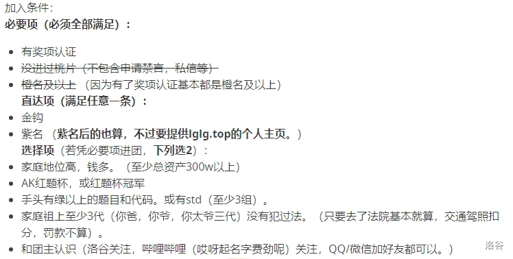 某个团队的加入条件