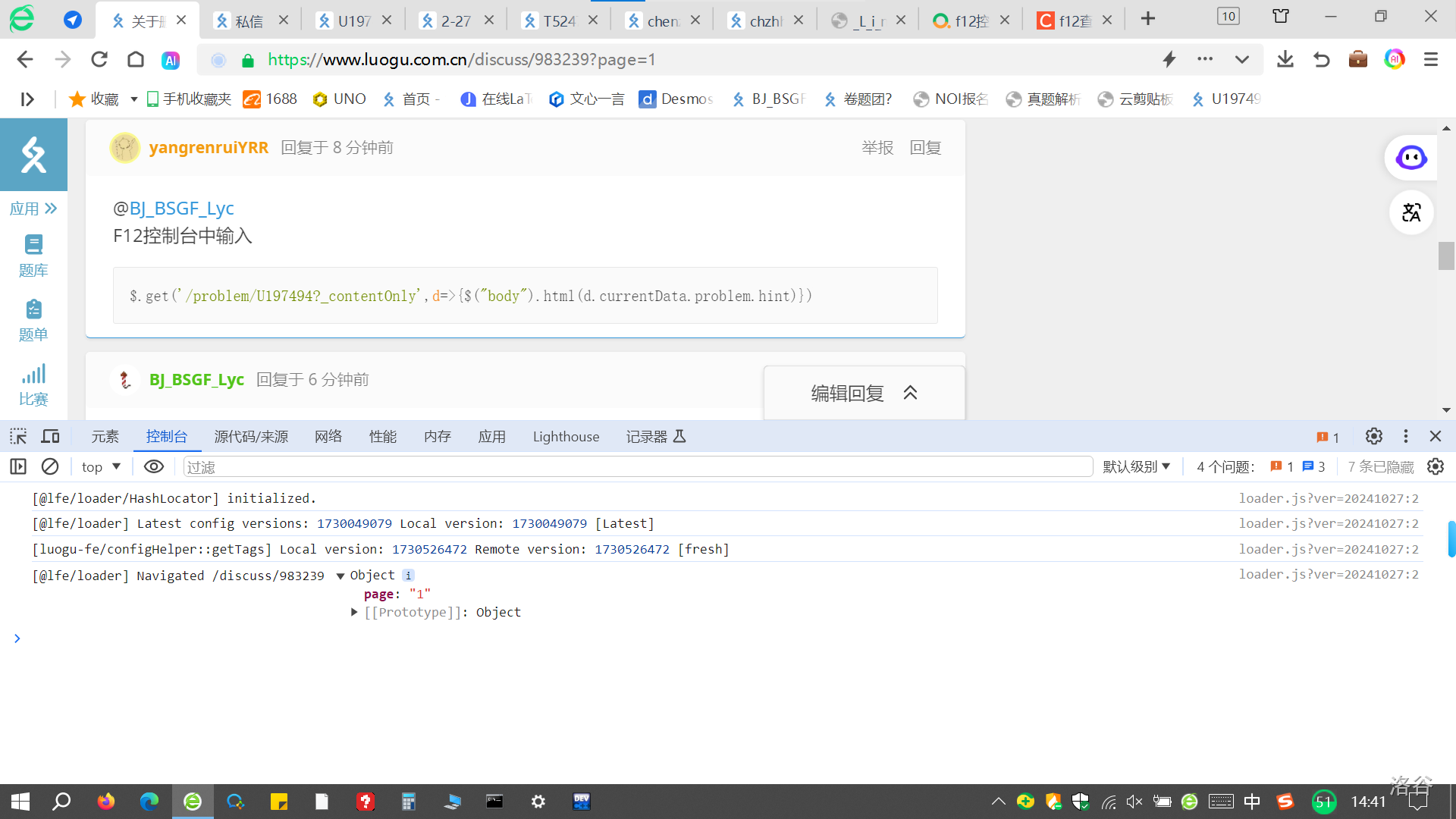 叠甲:wgzs [黑少研发的自动删犇器](https://www.luogu.com/paste/z4bd2rxi),如何在 f12 里找到“右方控制栏中的 Console”