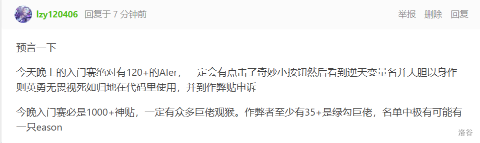 在讨论《入门赛 #37 作弊名单(棕名 143 人,封 16 人)》回复: