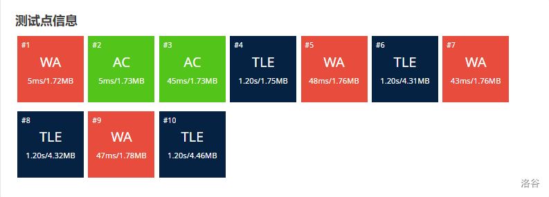 # 我是傻*,写了依托答辩,wa #1 5 7 9,TLE # 4 6 8 10  没见过如此五彩斑斓的结果。 郁闷,调了一中午,实在没辙了,前来求助。 ### 代码: ```cpp #incl…