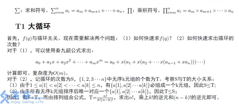 第七题大循环也是一道数学题(组合题)。题目难点为计算出循环次数,以及线性时间求多项式。
