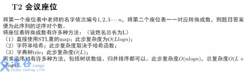 会议座位: ```cpp #include #include const int maxn=100005,wsize=52; int trie[maxn*5][wsize],v[maxn*5],num[maxn],tmp[maxn],n,pos; long long cnt; int hsh(char ch){retu…
