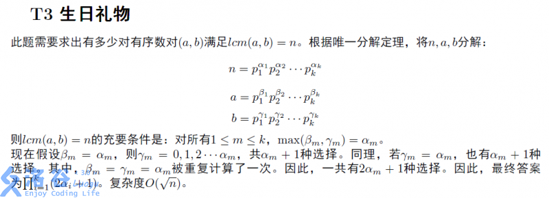 第九题生日礼物是一道数论题。题意为求满足$a,b$的最小公倍数为$n$的有序数对$(a,b)$的数量。