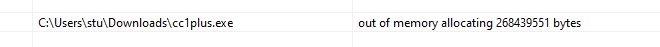 @[CleanIce](luogu://user/821660) 是64位,报错信息为`out of memory allocating 268439551 bytes`