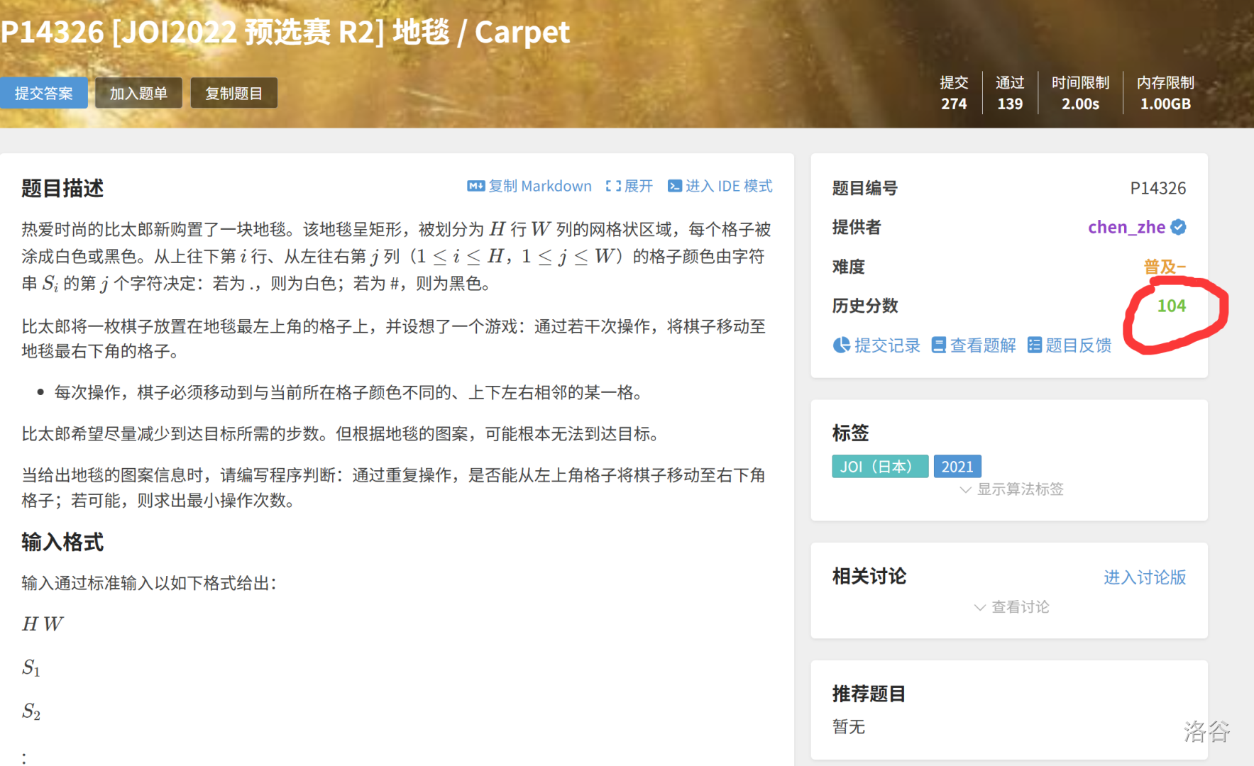 我是不是完蛋了? 模拟赛打的很不好,只得了 100 pts,第一题看错了输入格式所以一分没拿。 我很庆幸这是模拟赛,而不是正式的 CSP-J,但是谁能保证我在正式比赛中不会犯这种错误呢? 去年我 CSP-J 犯了极为大的错误,最终连个钩子都没有,我的马虎粗心到现在还没有改掉。 这场比赛中,我深深的反思了自己,发现我不仅…