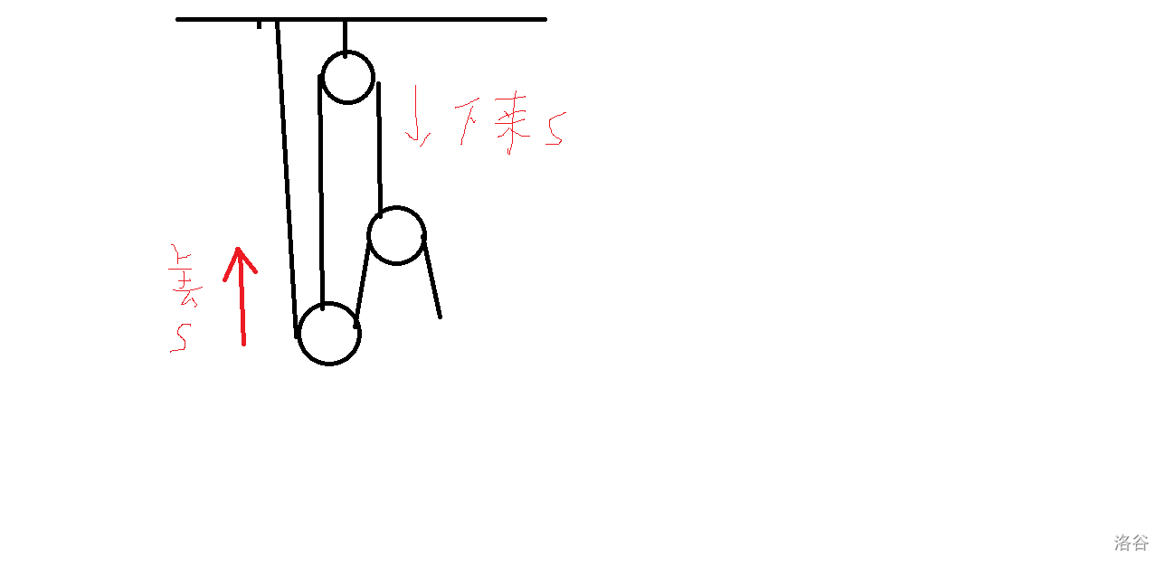 左边绳子短了s,中间绳子底下上去s,上面下来s,一共是3s,我是这么想的