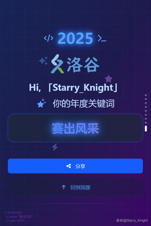 @[P_Bitset](luogu://user/1279868) 手法(1/1分):正确理解了我的手法。 心情分析(2/3分):确实是五味杂陈,但是主要是想发工单。 感情表达(3/4分):没有喜爱。 综合:6/8分,达到75分。