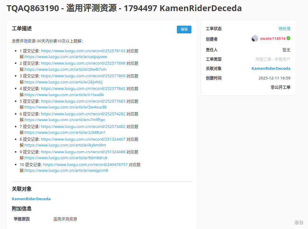 我是他同学,这人之前就棕过,而且在他关完隐之前我看了他的提交的代码(有个团队他在,我是所有者)全是 ctj 的 awa