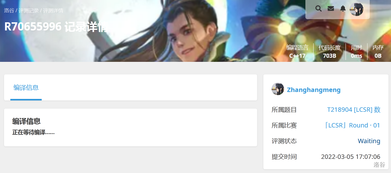 蒟蒻提交了第一题。可是不知道为什么一直在waiting,连自己的代码都看不了。请问这是什么情况。且的确是在比赛时间内提交的。