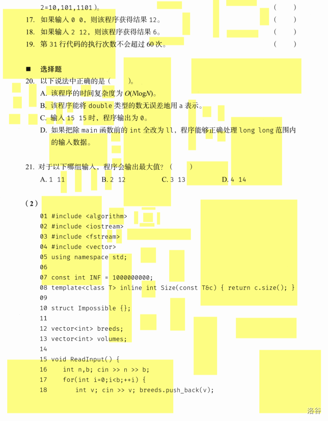 @[1217Eirc](/user/687268) 选择题再不能重题,起码也要加一点思考成分吧?这次的选择题直接就把知识点铺题面上了,很明显出题人没有用心在出题。你说的避免重题也不存在,几乎每年都有的前序中序推后序和出栈入栈顺序(J组),递归函数计算(S组)依然稳坐不退。 阅读程序和完善程序更是鱼目混珠,不说直接把函数…