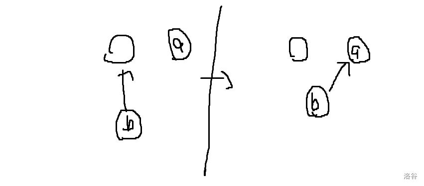 将 $a,b$ 两个人进行合并的时候不能简单将 `bin[b]=a` 如果 `b` 如果用箭头表示父亲关系的话这个情况就不对了: 应该改成 ```c++ if(zx(a)!=zx(b)){ bi…