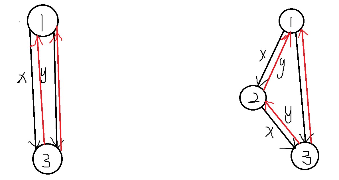 @[Stairs_upon_temple](/user/381643) 我想了一下,您看是不是这么回事。我们对两个图同时跑FF,那么两个图在任意时刻的残存网络都是一一对应的,比如下图  左边的图…