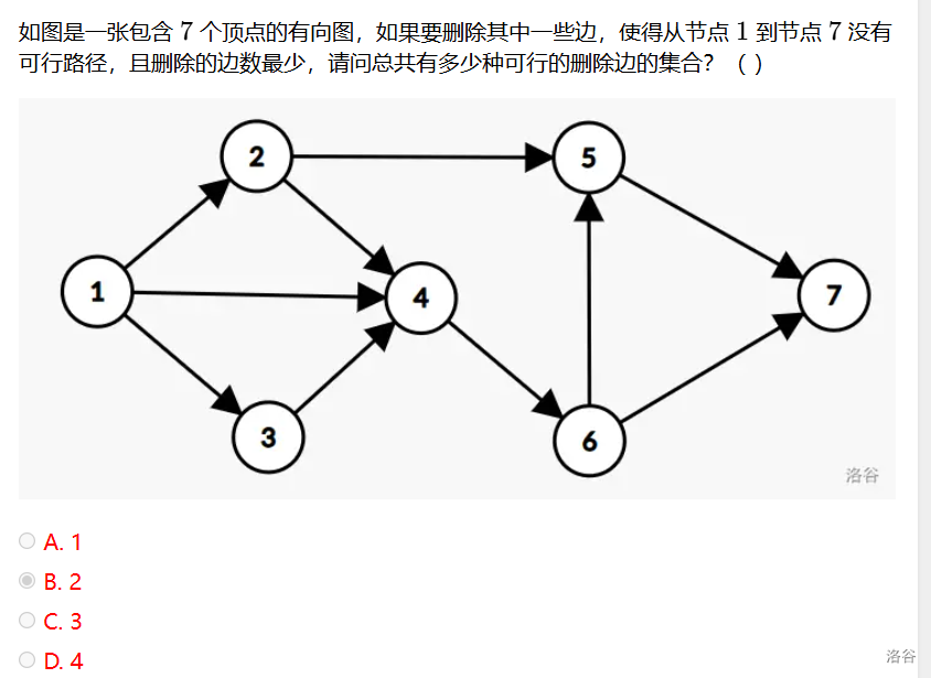 答案是4 但我觉的删(2,5)(4,6)还有(5,7) (6,7) 就行