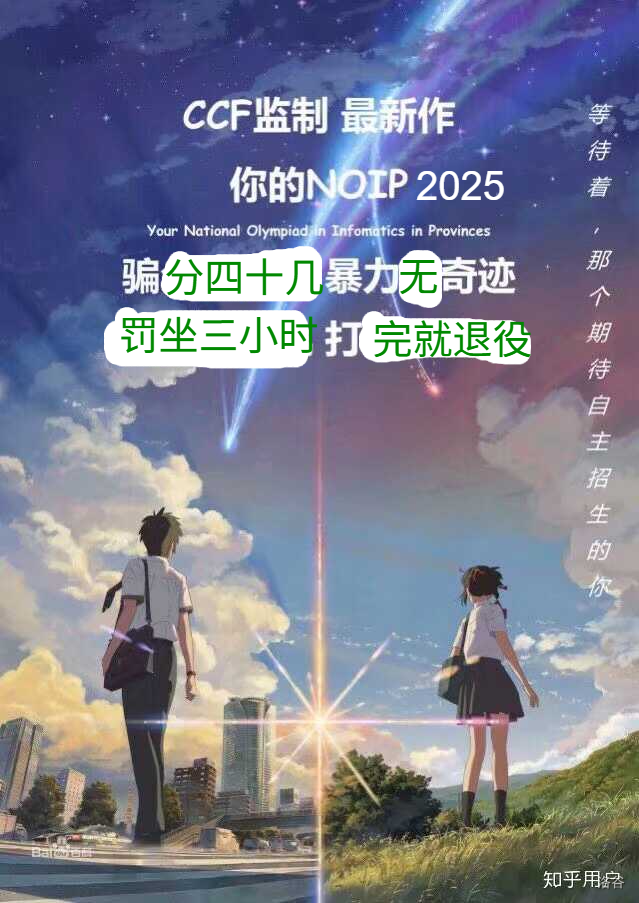 在文章《我的的NOIP : 骗分四十几,暴力没奇迹。罚坐三小时,打完就退役。》发表评论: