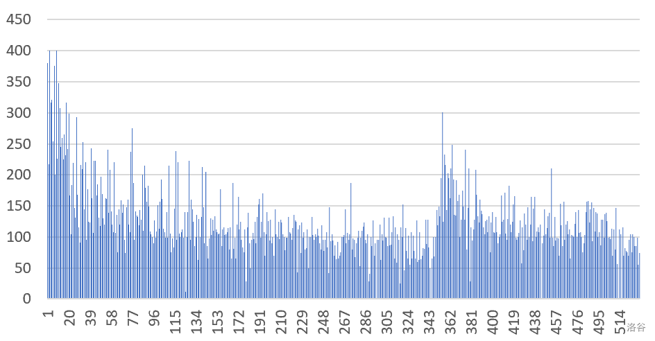 @[leo120306](luogu://user/1204080)@[miyachn](luogu://user/1295276)  这张图或许有用,横坐标准考证号,纵坐标分数。 蹲大神硬生生…