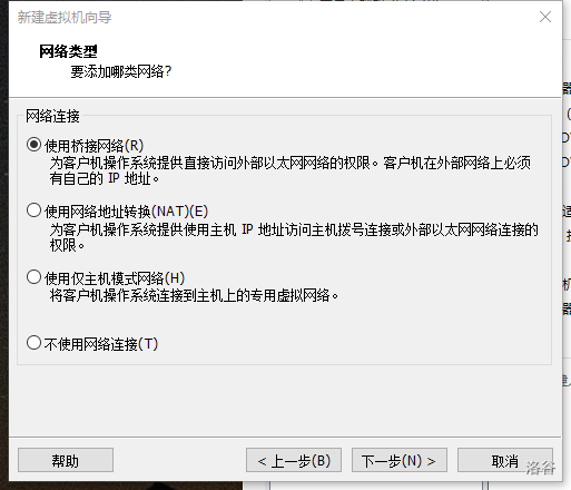 我现在只选择了桥接模式,没有给我弹出窗口